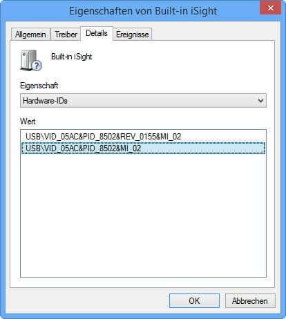 Klicken Sie dazu doppelt auf das unbekannte Gerät, und öffnen Sie die Registerkarte „Details“.