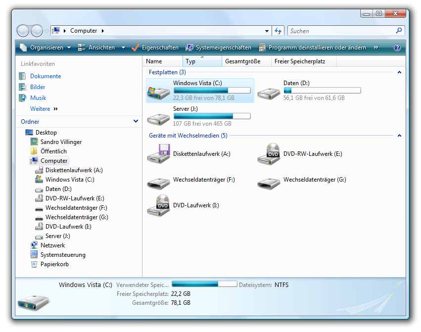 - Öffnen Sie "Computer" (Siehe Desktop oder Startmenü) und wählen Sie Ihr Systemlaufwerk. Dies erkennen Sie am Windows-Logo auf dem Festplattensymbol:
