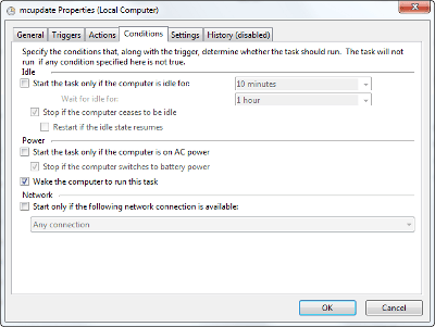 When Microsoft's home cinema program "Windows Media Center" is started for the first time, a task is added to the task scheduler. It ensures that Windows wakes up the PC at regular intervals and checks for updates for WMC - this can also happen at night! You can stop this annoying error with the following steps: Click on the Start button and type in "Task Scheduler". Press enter. Now expand "Task Scheduling LibraryMicrosoftWindowsMedia Center" one after the other. Now double-click on "mcupdate_scheduled" and then on "Conditions".