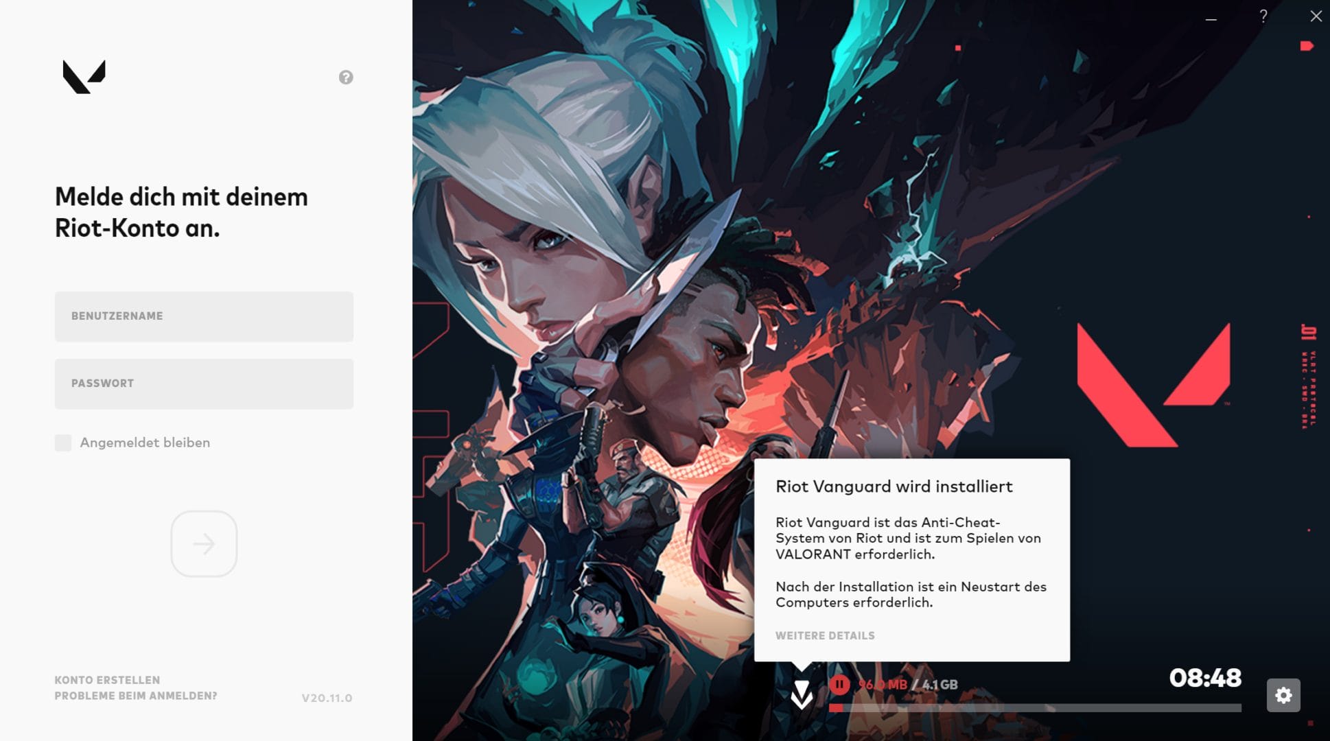 The official registration is done quickly via https://playvalorant.com/de-de/. Simply enter your login details and wait for the confirmation email. You can then download the installer directly: