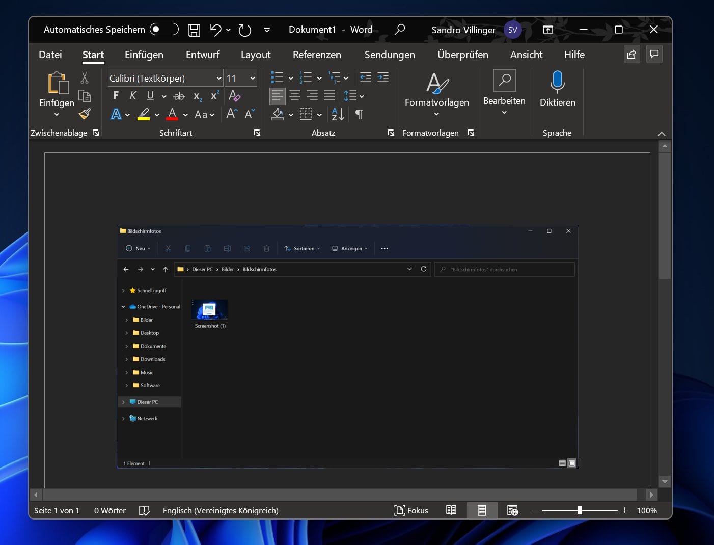 Insert screenshot in Word under Windows 10