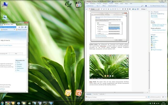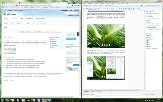 Aero Snap: If you drag a window to the left or right edge of the screen, it is automatically scaled to the respective half of the screen. Previously, you could only display two windows directly next to each other with great effort. By the way: If you drag the window to the top of the screen, it will be maximized.
