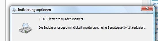 . Hier sehen Sie, wie viele Dateien bereits indiziert sind.