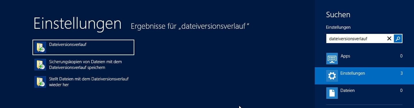 1. for the file version history to work, Windows needs a second hard disk. This can be a USB drive or a network hard disk. Tap the "Windows" button to go to the new start screen. Then type in "File version history" and the search function will start. Then click on "Settings" and then on "File version history".