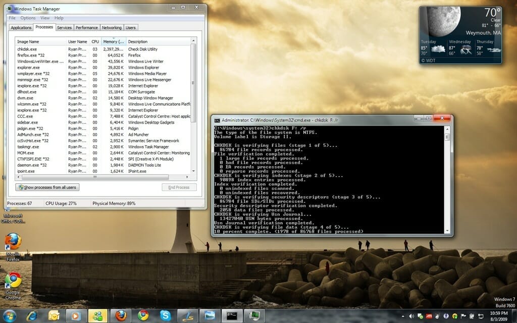 Laut Ryan Price lässt sich der Fehler über die Kommandozeile sehr leicht reproduzieren. Sobald man über die Windows-Eingabeaufforderung das Tool “CHKDSK” in Verbindung mit dem Parameter “/r” (Automatische Fehlerreparatur) aufruft und einen Scan aller Partitionen startet kann man im Task-Manager beobachten, wie das CHKDSK immer mehr Speicher belegt und Windows letztendlich zum Absturz bringt.