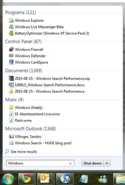 The Windows search index in Vista and Windows 7 finds files, mails, contacts, control panel entries or appointments within a few seconds: