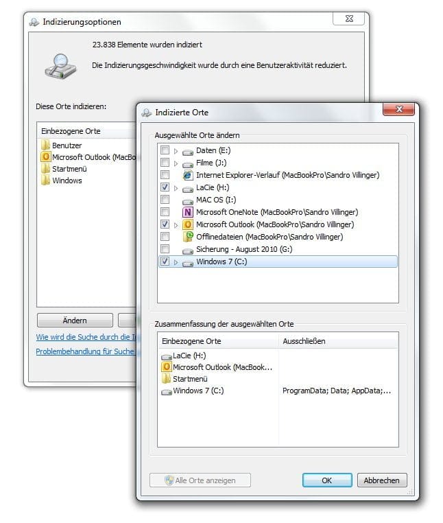 However, only data stored in the user directory (e.g. "C:UsersSandro Villinger") is recorded. Searching in other folders, for example on an external hard disk, is noticeably slower. In this case, Windows does not have to use the fast index, but has to "manually" search the hard disk itself. Find out here how you can add ALL your storage locations to the Windows search service in no time at all and search (and find!) everywhere quickly: