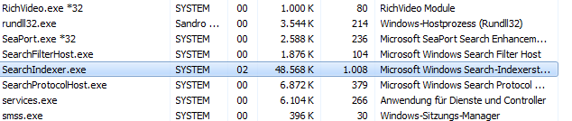 Note: If you have less than 1 GB of RAM, you should be careful! The larger the index, the higher the memory load. In tests I have carried out, this amounts to less than 100 MByte with Windows 7 even with a larger index, but this can be higher with Vista! Therefore, always pay attention to the consumption of "SearchIndexer.exe", which is responsible for the search service: To do this, right-click on the taskbar, select "Start Task Manager" and then "Processes". Pay attention to the consumption of the file here:
