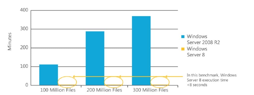 Admins mit großen Datenmengen können aufatmen: Gibt's Probleme mit der Dateisystemstruktur, wartet nach einem Neustart künftig nicht mehr der Checkdisk-Teufel auf Sie. Bislang stand die Dauer eines Scanvorgangs von Checkdisk proportional zur Anzahl und Größe der Dateien. Ärgerlich, wenn mal größere Datensätze gescannt werden: Entweder war der gesamte Server oder die einzelne Datei während des Scanvorgangs verfügbar. Windows Server 2012 macht damit Schluss: