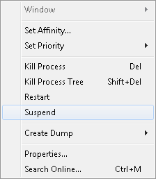 Is a process that you are not allowed to end eating up performance without end? Then you can pause it briefly if you want to continue working with another program in the meantime. To do this, right-click on it and select "Suspend".