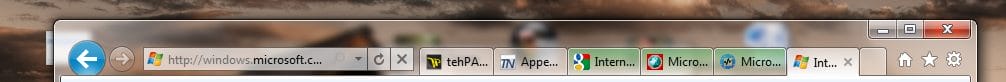 The new Internet Explorer 9 interface: A smart, tidy design. The focus is no longer on the browser, but only on the content!
