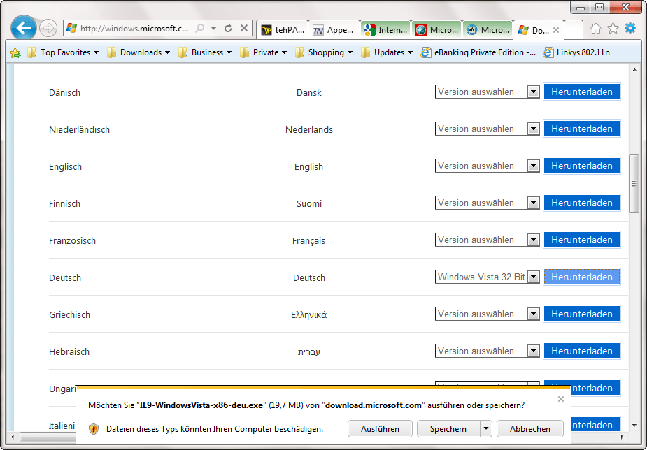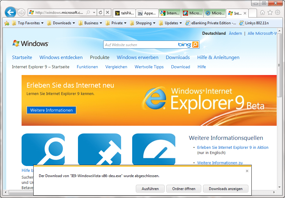 Achtung: XP-Nutzer müssen draußen bleiben! IE9 funktioniert ausschließlich nur mit Windows Vista und Windows 7.
