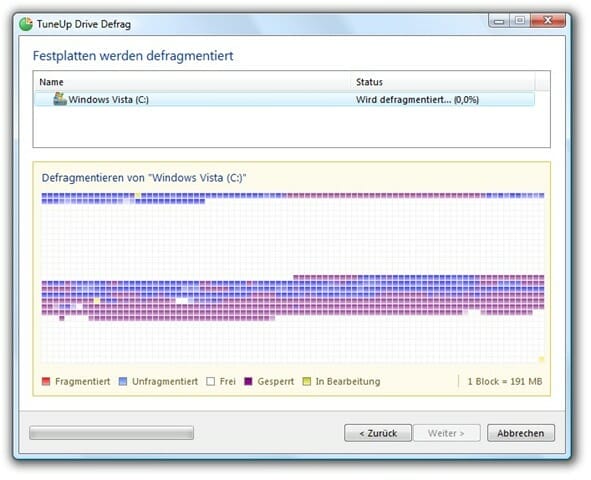 , um die Defragmentierung zu starten! Der Vorgang kann, je nach Zustand Ihrer Festplatte, zwischen 30 Sekunden und einer Stunde (!) dauern. Am Ende klicken Sie auf