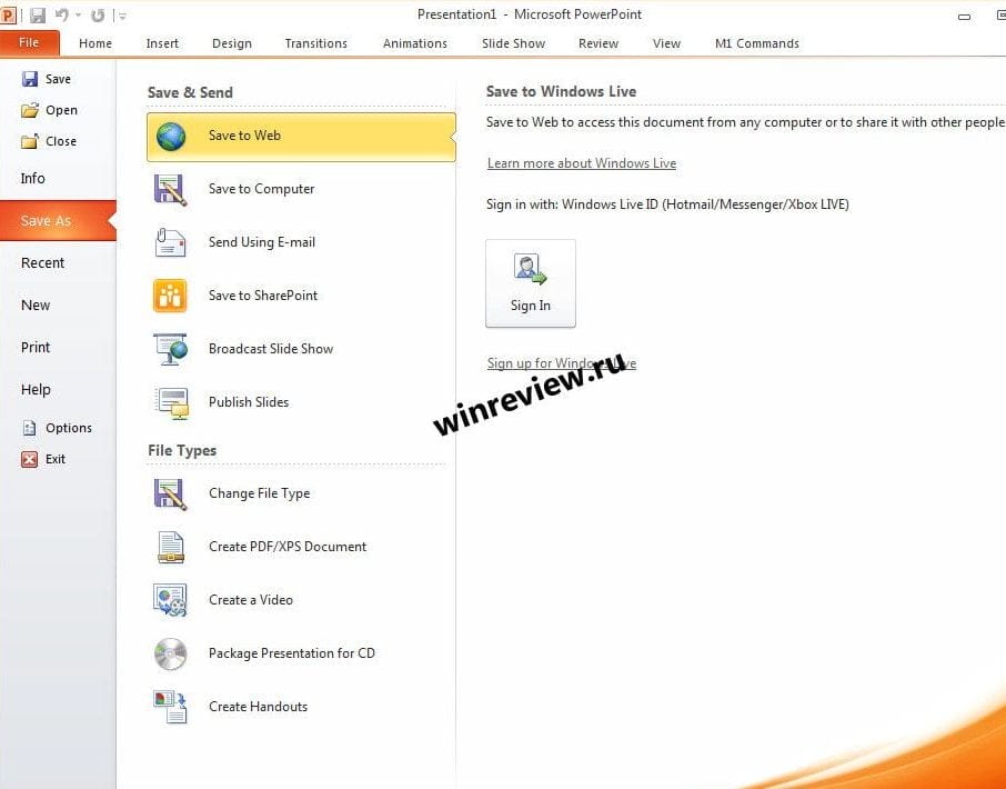 In addition, the "Save as" dialog has been linked to the "Share" dialog. When clicking on "Save as", the user now has the option of transferring their presentation to the web (entry comes first!), saving it locally, sending it by email, storing it on a SharePoint, sending it remotely or publishing individual slides.