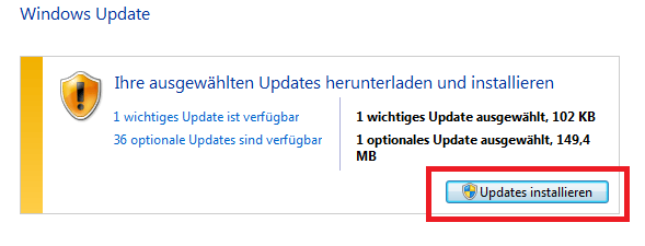 In the following window, click on the Install updates button.