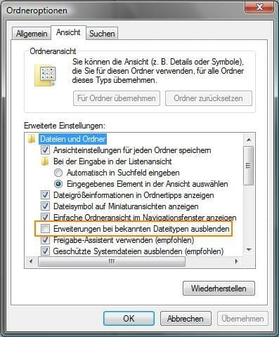 In der Standardeinstellungen von Vista werden normalerweise die bekannten Dateierweiterungen versteckt. Gerade bei unbekannten Dateien kann das jedoch sehr gefährlich sein. Wir zeigen Ihnen, wie Sie diese Option aktivieren!