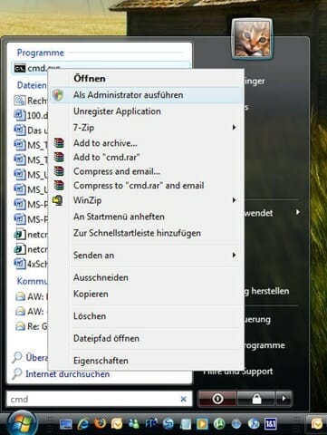 2. In der Liste der Suchergebnisse erscheint nun "cmd.exe" ganz oben. Klicken Sie mit der rechten Maustaste darauf und wählen Sie "Als Administrator ausführen".