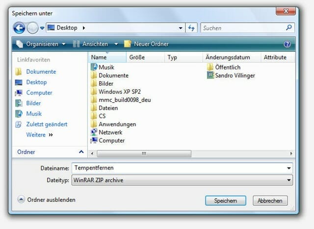 2. Klicken Sie anschließend auf "Speichern unter..." und wählen Sie beispielsweise den Desktop.