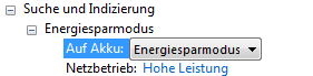 In "Search and indexing/Energy saving mode", click on "On battery" under "Energy saving mode".
